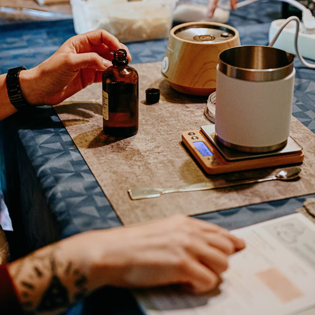 Lorsque j’ai envisagé ma reconversion, j’ai suivi une formation de 8 mois sur la formulation et la réglementation cosmétique. J’ai ensuite poursuivi mon apprentissage en auto-formation (j’adore apprendre !) et je mène toujours de nombreux essais, tests et ajustements pour exercer mon métier.
