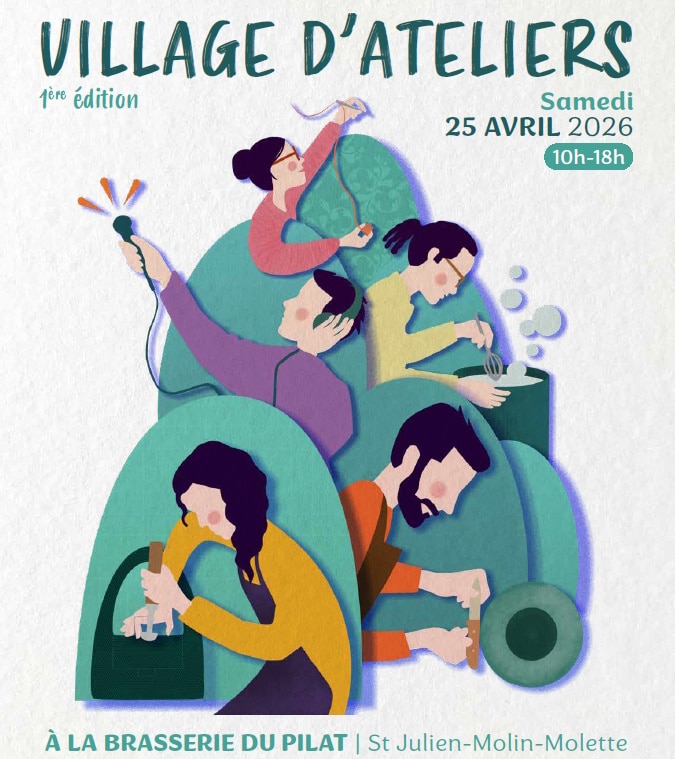 APortée2Mains organise Le 1er Village d’Ateliers, un événement convivial de création qui se tient le samedi 25 avril 2026 à La Brasserie du Pilat. A l’occasion de son 5ème anniversaire, le collectif d’Artisans Créateurs vous invite à créer !